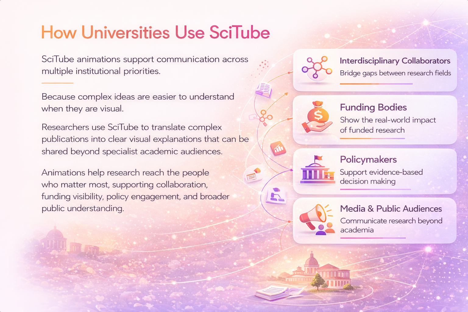 By translating research into clear visual narratives, SciTube helps universities extend the reach and lifespan of their research outputs.