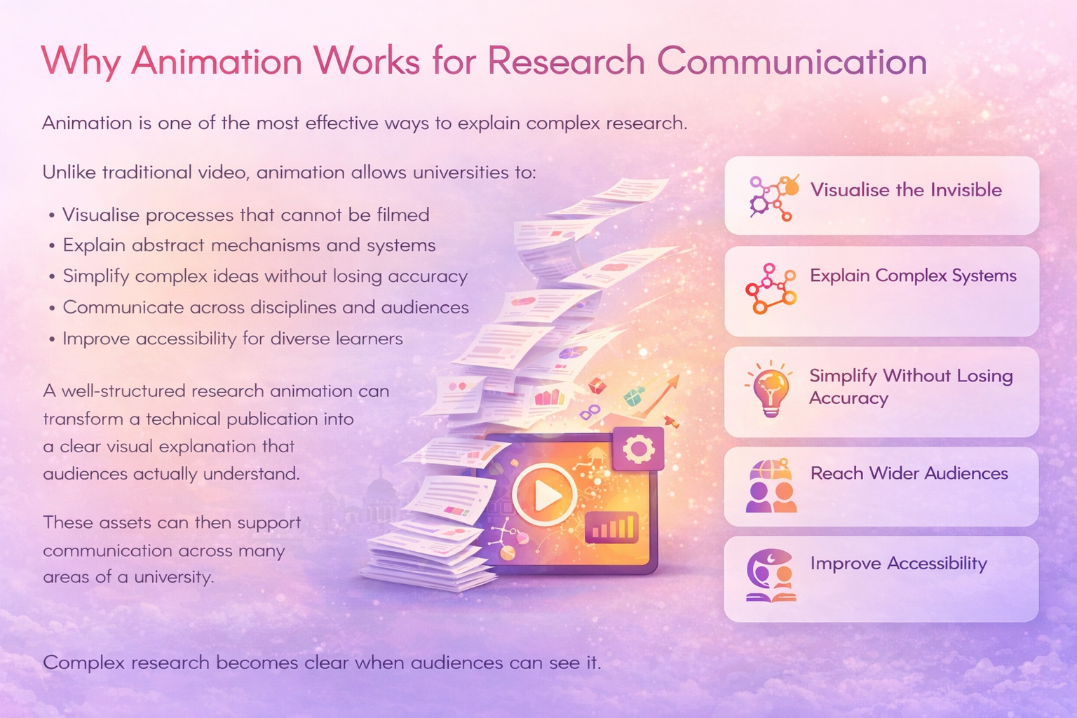 This allows universities to integrate research animation into their communication strategy without building an internal production team.